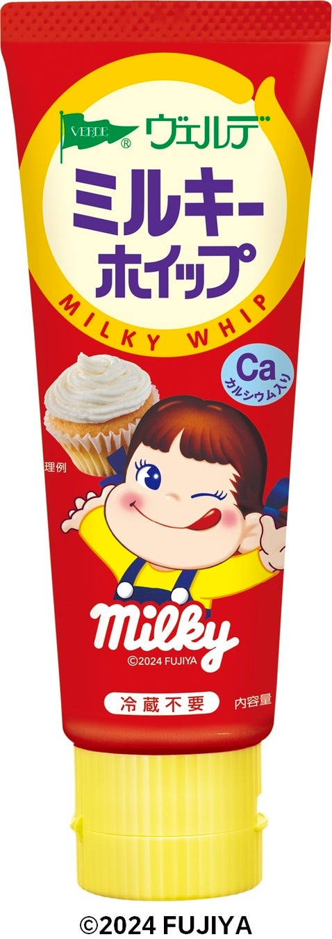 アヲハタは不二家とタイアップし不二家の「ミルキー」をホイップに仕立てた「ヴェルデ ミルキーホイップ」を新発売