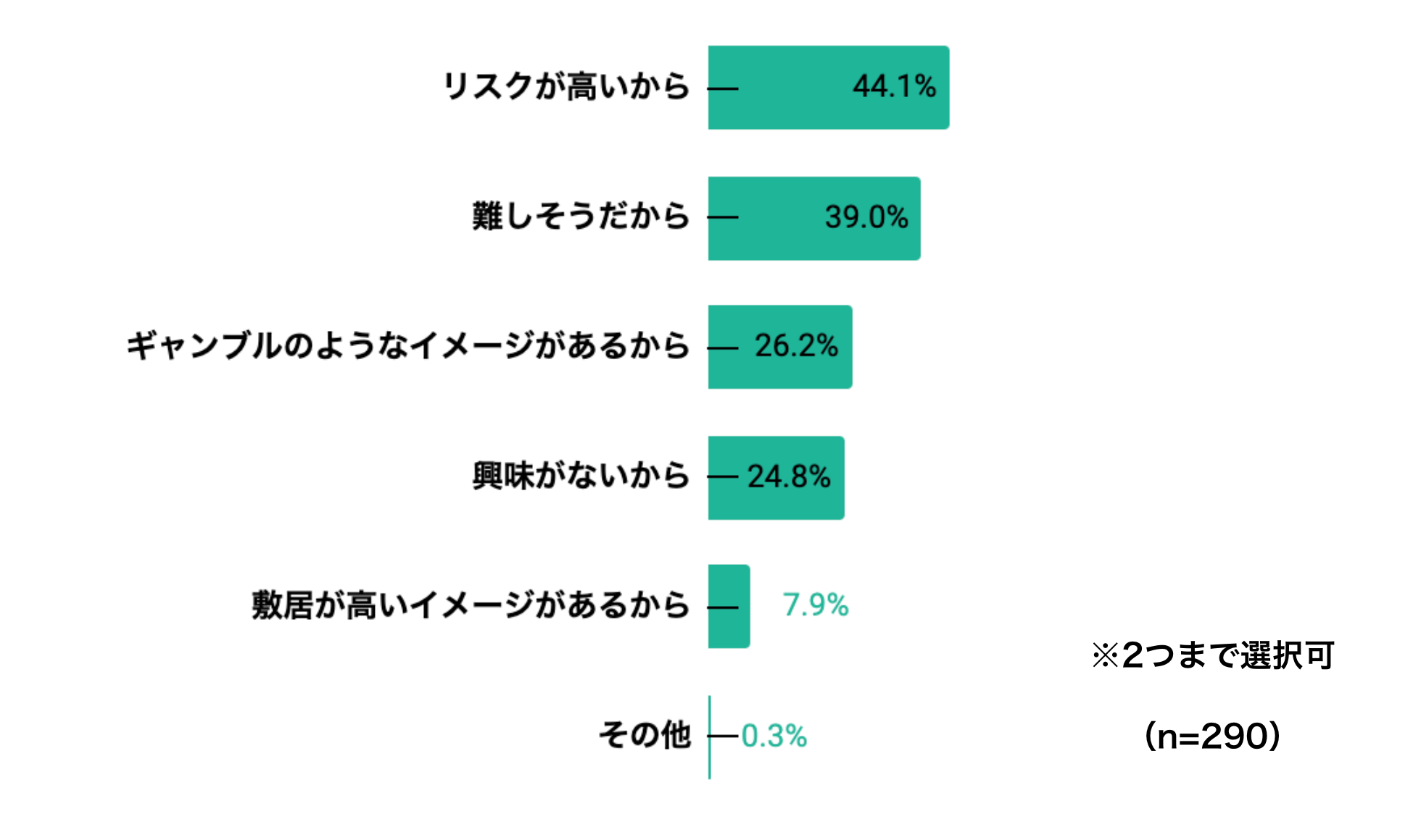 4. 仮想通貨投資に意欲的でない層は、リスクや難しさを懸念する結果に