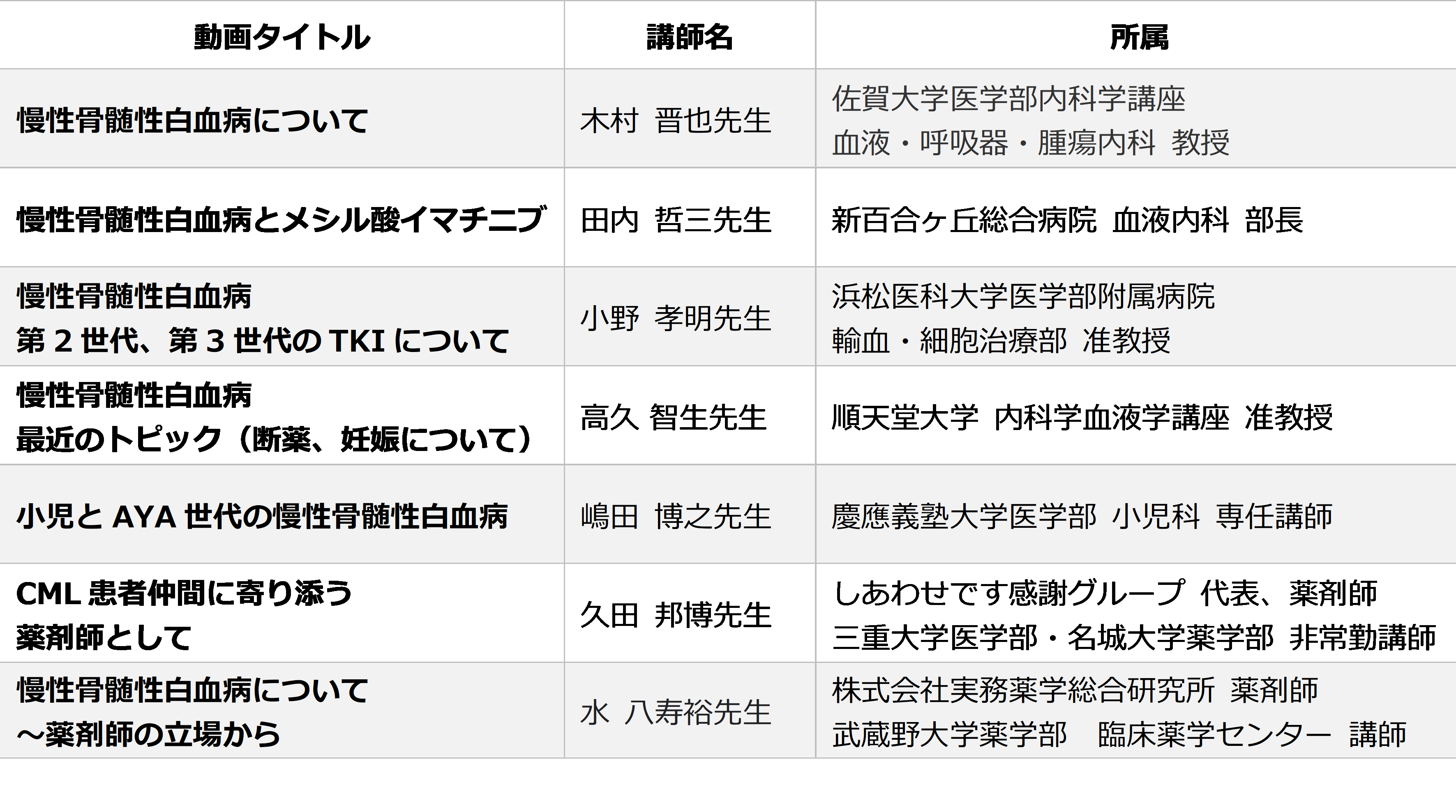 【薬剤師向け】慢性骨髄性白血病(CML)治療環境向上プロジェクト特設動画サイト公開のご案内