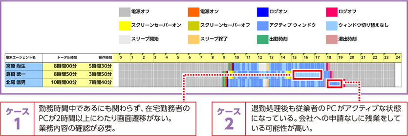 ●従業員の労働状況を可視化する端末稼働状況レポート