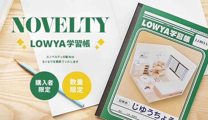 実店舗でしか貰えない“LOWYA学習帳”をプレゼント!勉強やお絵かきを楽しもう♪