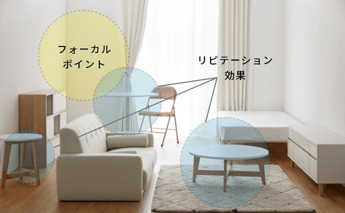 フォーカルポイントとは「視線が集中する場所」のこと。お部屋に入った時に最初に目が行くフォーカルポイントに置きたい家具やお気に入りの家具を配置すると、お部屋全体のレイアウトがスムーズに進みます!
