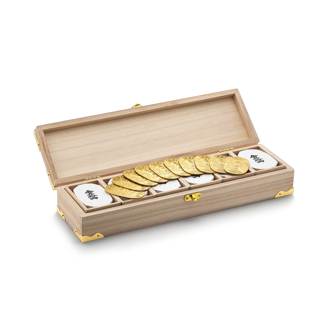 「純金小判 2026」、「純プラチナ小判 2026」は、小判に使われる伝統的な茣蓙目(ござめ)模様を背景に古来より吉兆の象徴として親しまれてきた龍と鳳凰をあしらいました。龍と鳳凰がともに現れることを表す「龍鳳呈祥(りゅうほうていしょう)」は、めでたい出来事や幸福な兆しを意味する慣用句です。この二つの神獣は平和・幸福・繁栄を示す吉祥の組み合わせとして尊ばれてきました。本小判では龍と鳳凰が互いに向き合うような構図を採用し、調和と躍動を感じさせるデザインに仕上げています。龍の爪は、中国では皇帝の象徴として「5本爪」で描かれることが多く、絶対的な権力や富を表すとされています。「純金小判 2026」、「純プラチナ小判 2026」では、日本で数字の「5」より縁起が良いとされ、発展、繁栄、成長の意味を込めて描かれるなどして親しまれている「3本爪」を採用しました。力強さの中にも、繊細さと優雅さも兼ね備えた逸品として、2026年が良い年になるよう祈りを込めてデザインしました。純金製、純プラチナ製で龍と鳳凰の配置を反転させており、コレクションとしてセットで購入する方のニーズにも対応します。また、「純金小判 2026」、「純プラチナ2026」をそれぞれ10枚セット、30枚セット、50枚セットにした千両箱も同時に発売します。