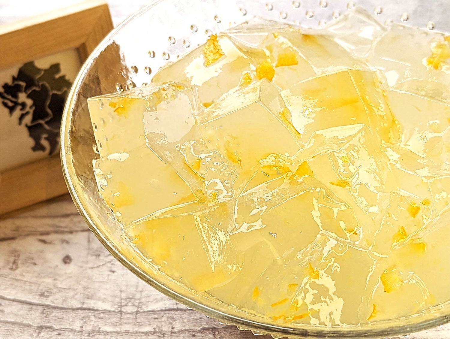 宮崎県で生まれた日向夏の風味がたっぷり味わえるゼリーです。オレンジピールと一緒にさわやかな味わいが口いっぱいに広がります。