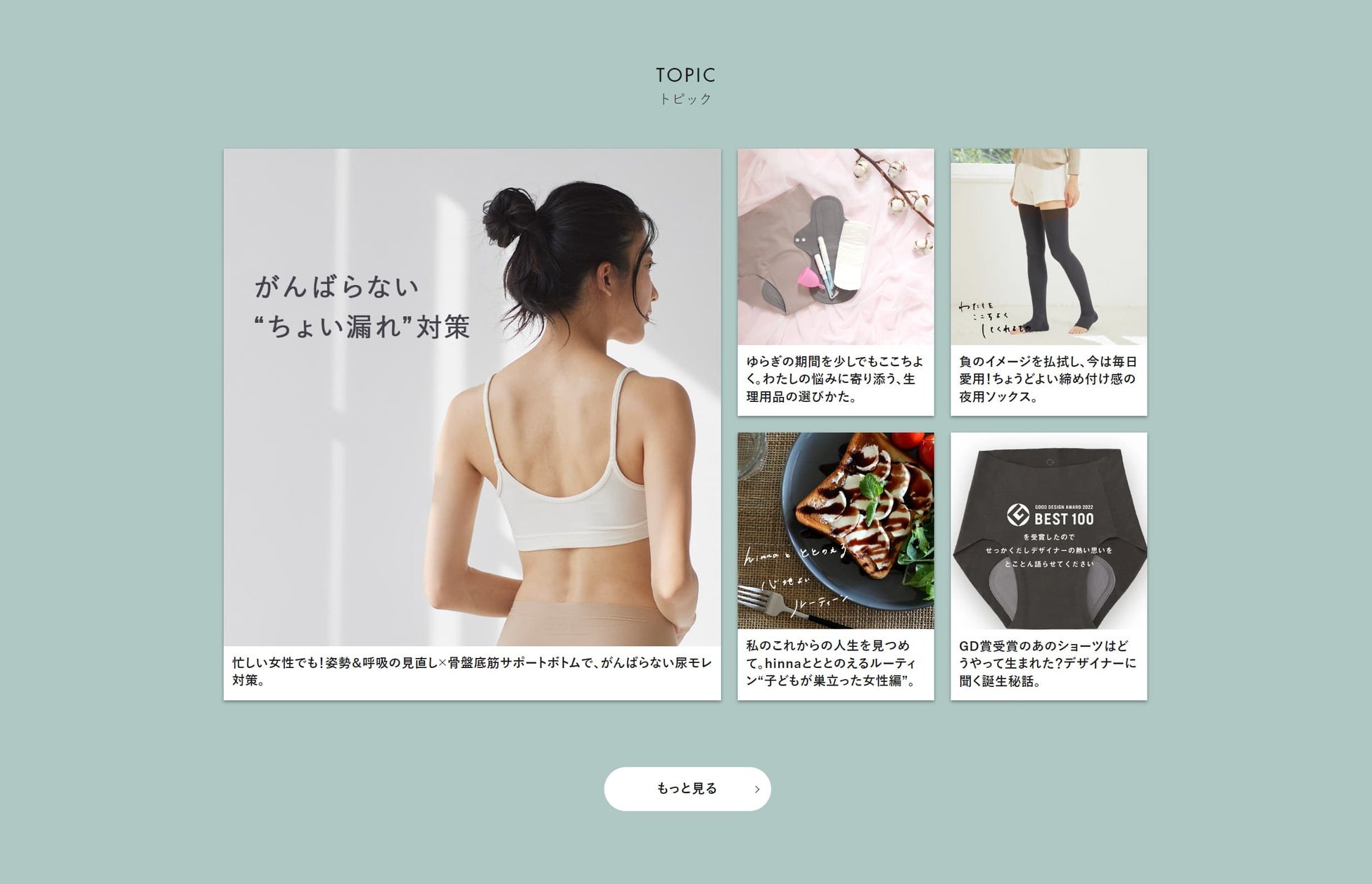 hinna公式オンラインショップでは、女性のお悩みにフォーカスしたコンテンツを配信。取扱商品も女性のお悩みを軸にカテゴリを分類する構成となっています。