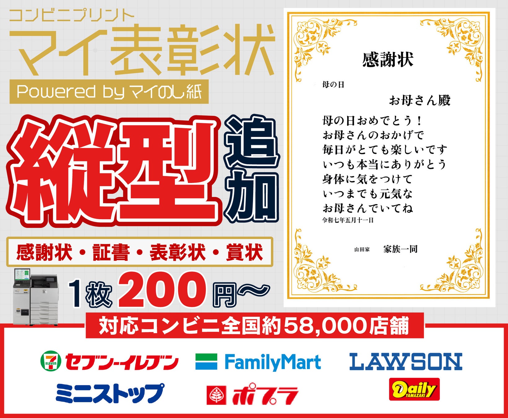 株式会社サムライソード(本社:東京都豊島区、代表取締役:比企 良公)は、スマホから誰でも簡単に表彰状が作成・印刷できるサービス『マイ表彰状』に、新たに「縦型デザイン」を追加したことをお知らせします。