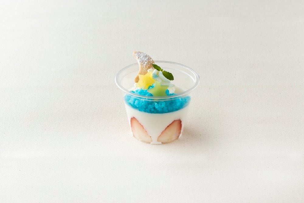 ゴッホの名画をイメージした特製のパンナコッタにグラニテ、星形のゼリーをあしらったデザート。