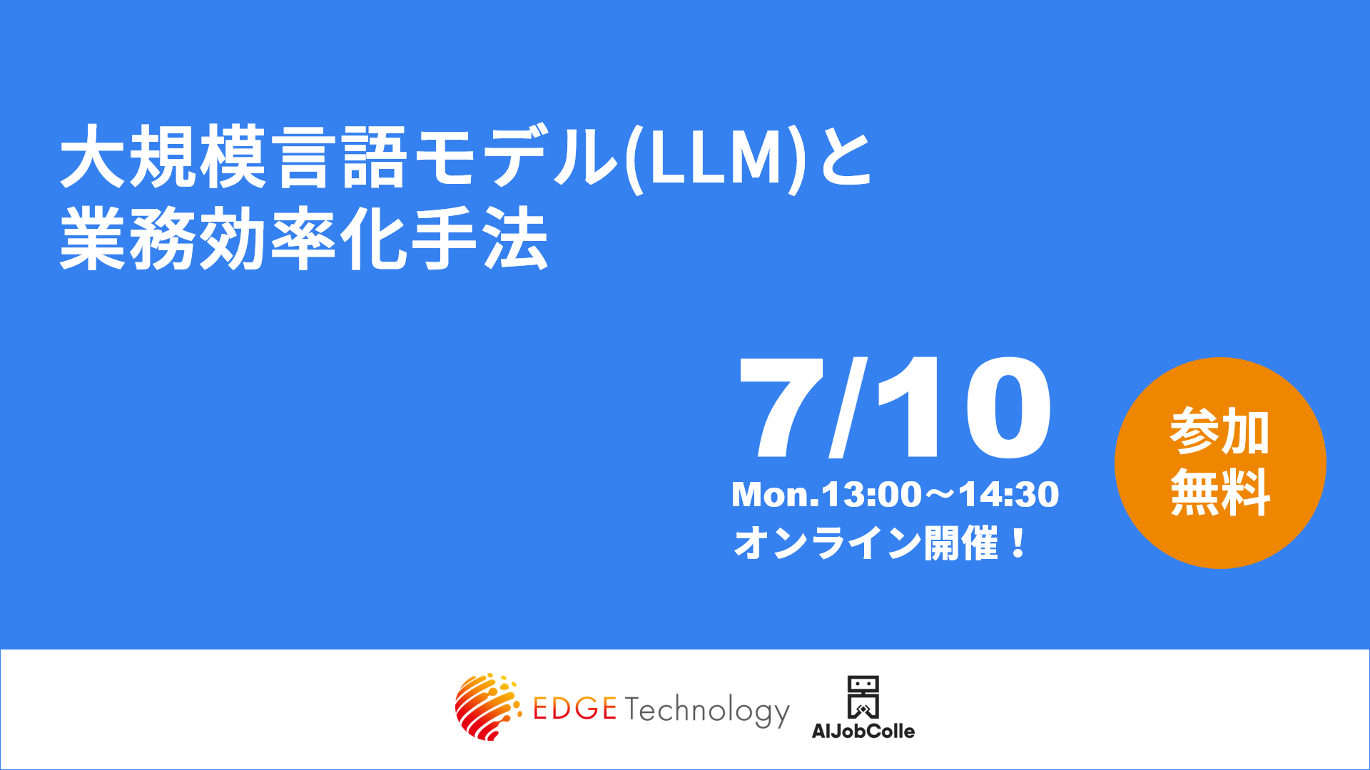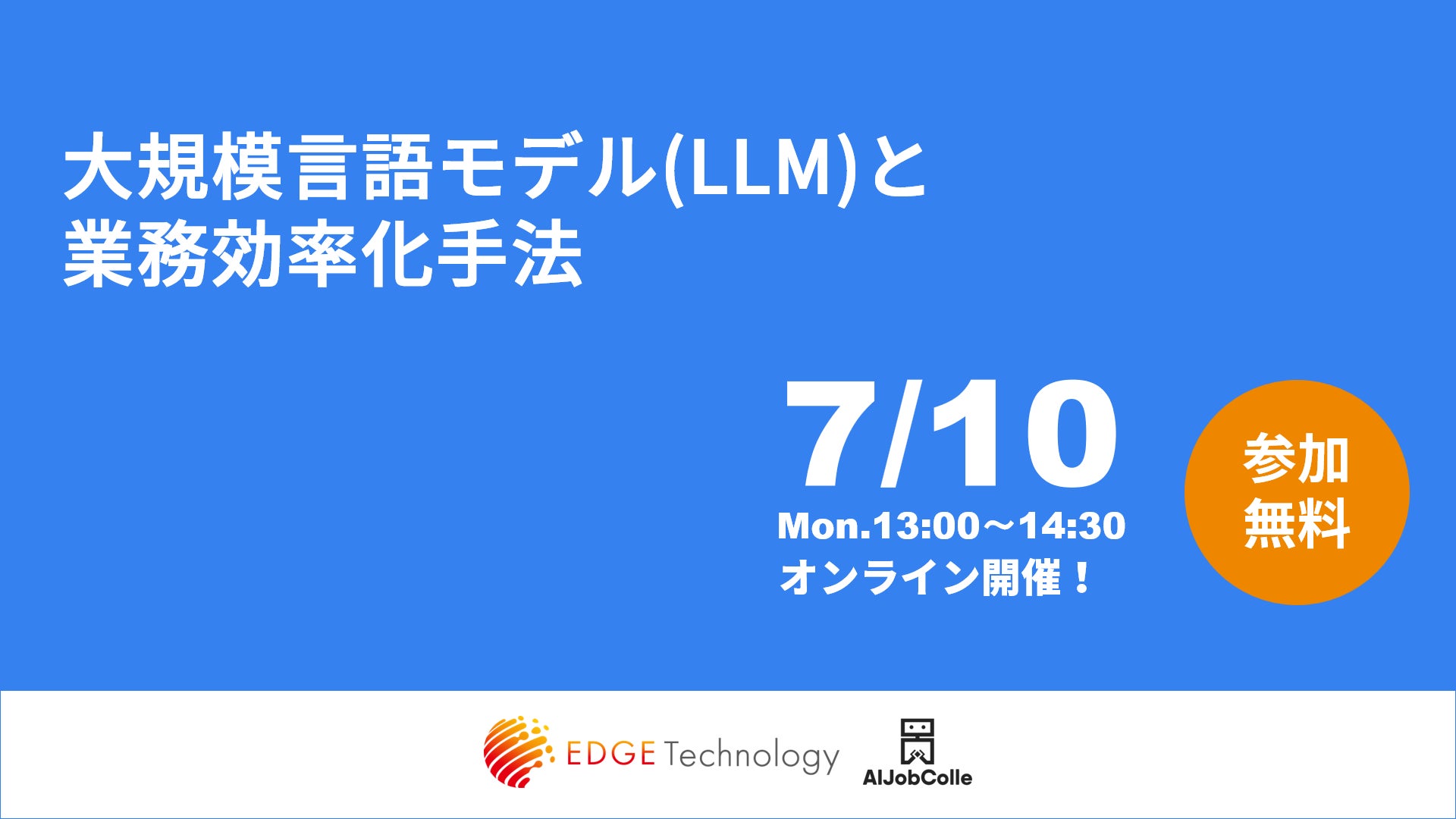 LLMによる業務効率化に興味がある方必見!エッジテクノロジー(AIジョブカレ)がセミナーイベント「大規模言語モデル(LLM)と業務効率化手法」を7月10日(月)に開催!