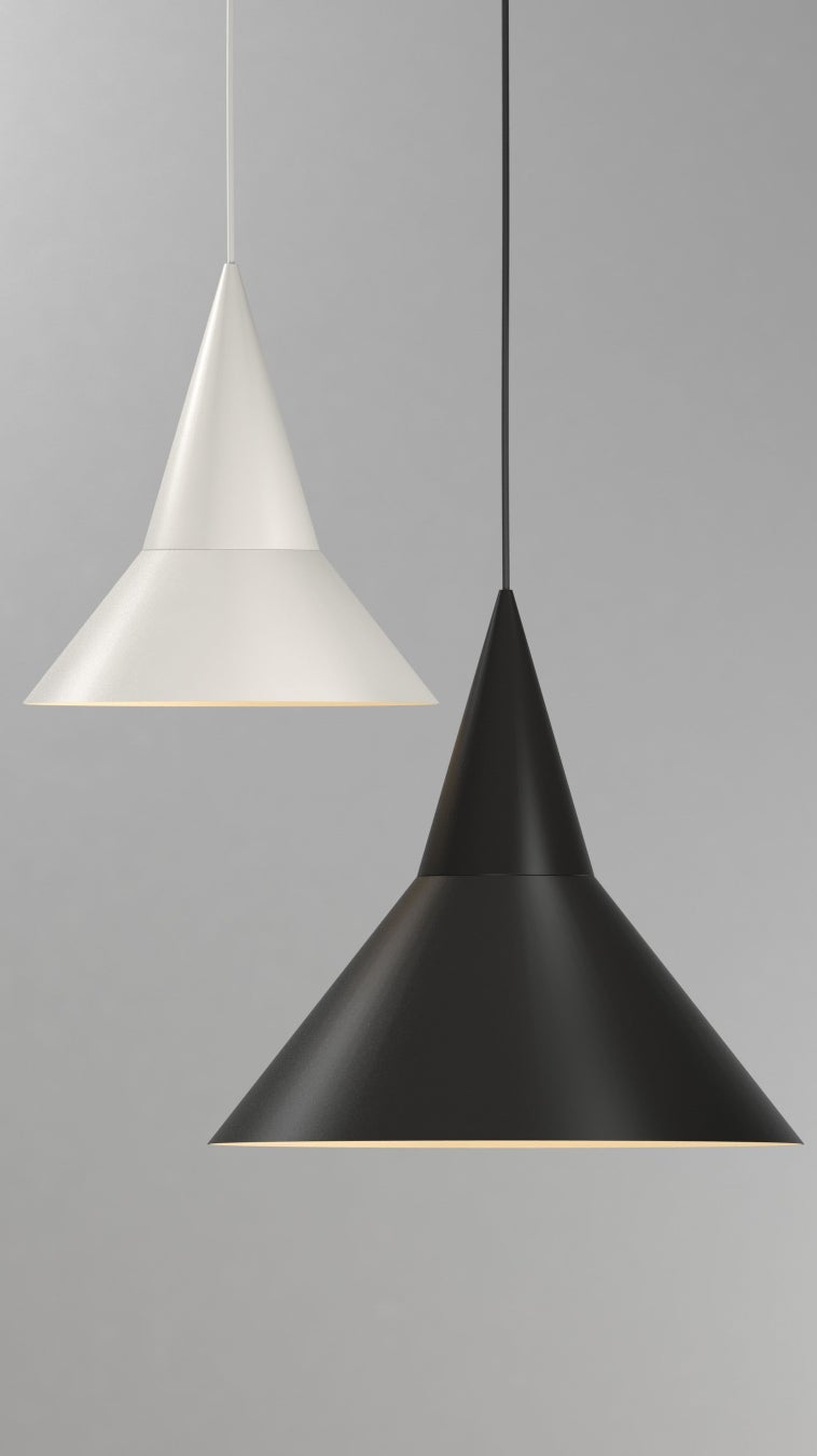 上向きの光が天井や壁を照らし、空間をやわらかな間接光で包むフロアランプBOUNCE(バウンス)。明かりの役割を静かに全うするような、潔い佇まいです。食材の色を正確に映し、料理の美味しさを引き立てるペンダントライトWITCH HAT(ウィッチハット)。多灯吊りにしても空間にきれいに収まる、シャープなフォルムが特長です。