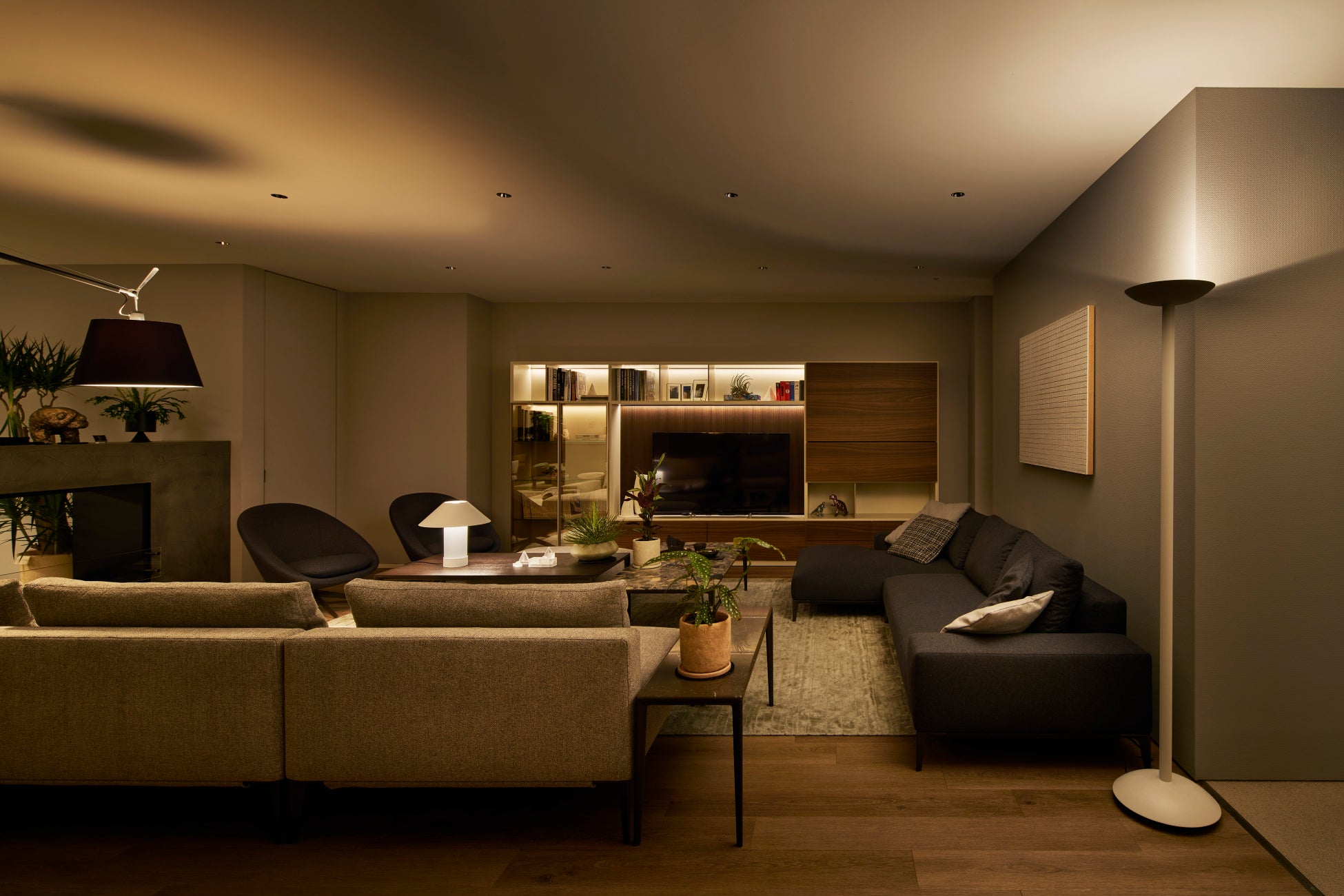 食卓を華やかに見せる光、家族の時間をやわらかく包む光、眠る前に心身をほどき深い眠りへと誘う光。照明は住まいの心地よさ——ひいては暮らしの質を左右する環境だと考えています。本展示では、リビング/ダイニング/ベッドルームなどシーン別に、複数の明かりを重ねることで「光の質」の違いを体感いただけます。