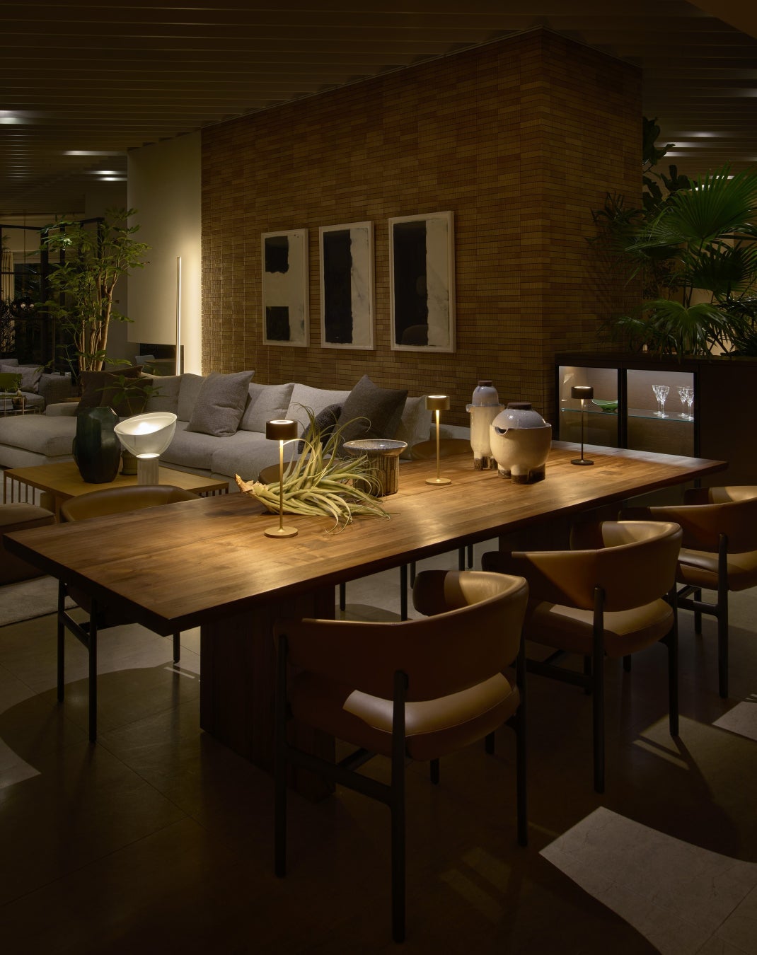 開催期間中、アルフレックス東京は営業時間を夜8時まで延長。普段より照度を抑えた空間で、テーブルランプ/ペンダントライト/ポータブルランプなど、光の多様なレイヤーによるスタイリングをご覧いただけます。