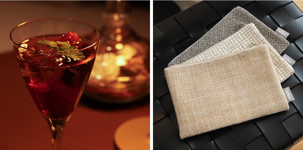 営業時間を延長する、夜6時-8時にご来店の方には、チョコレートとベリーのノンアルコールカクテルをご用意しています。また、アンケートにお答えいただいた方には、arflexの家具の端切れで作ったオリジナルポーチをプレゼントします。