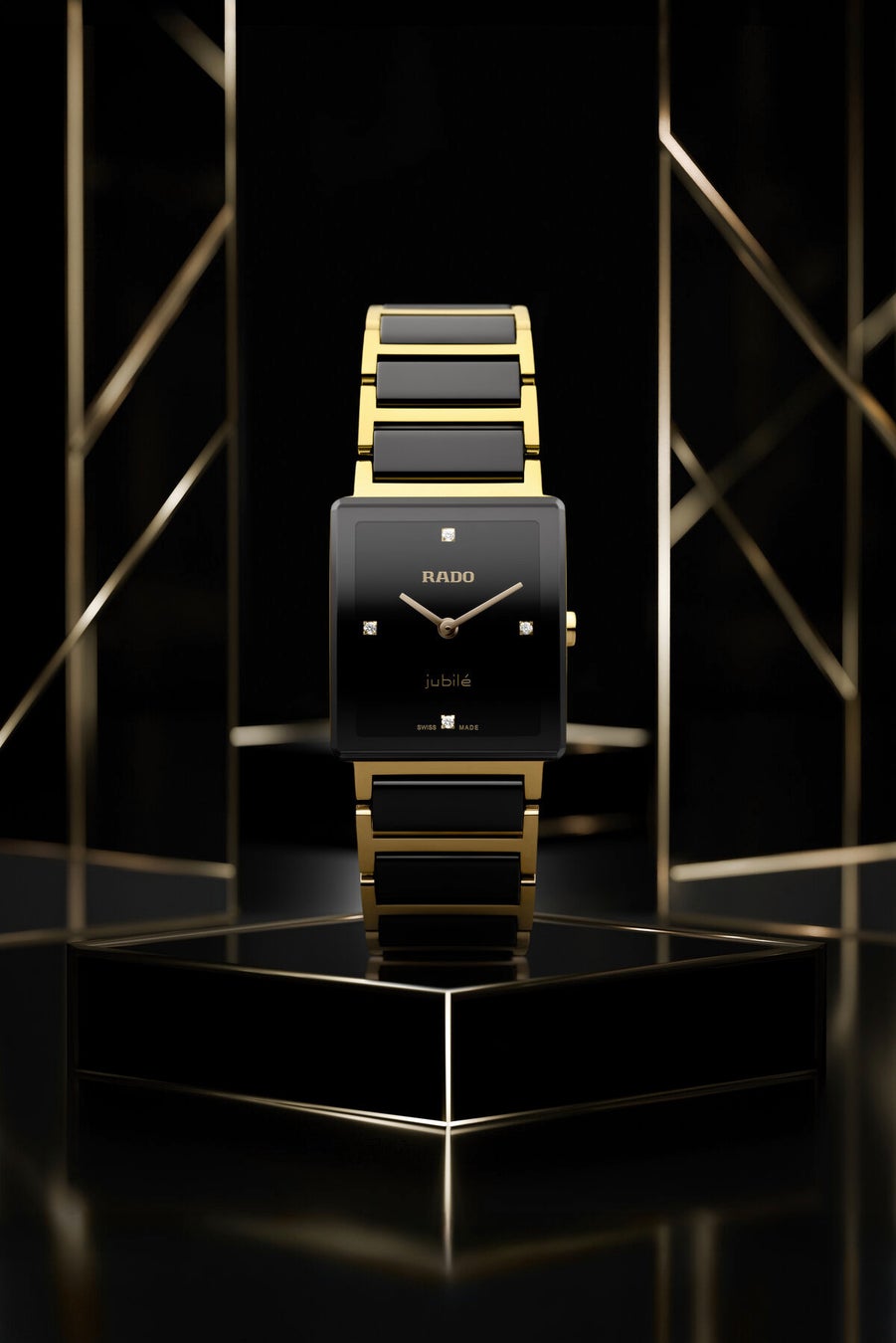 ブラック、イエローゴールドプリントのRadoおよびJubiléのロゴ