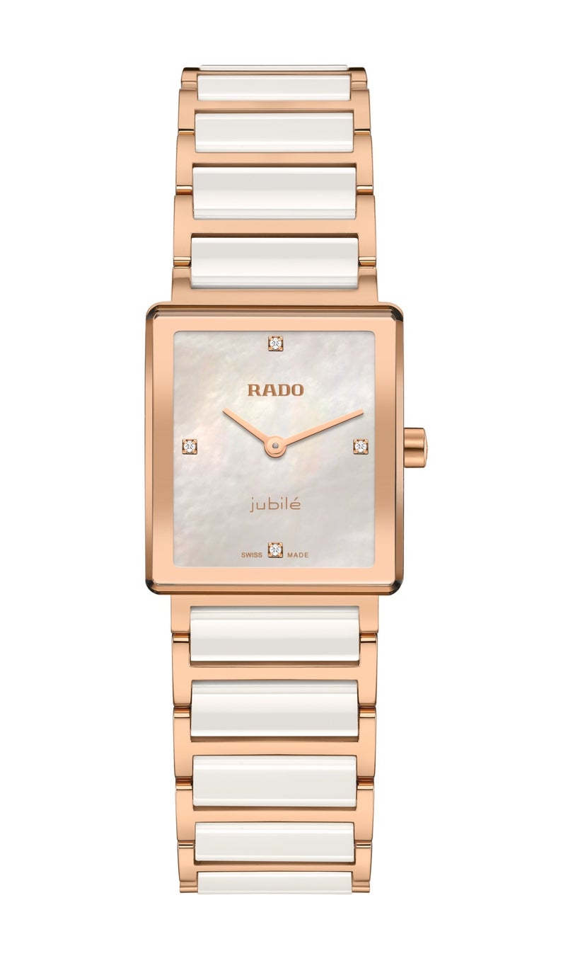 ホワイト マザーオブパール、ローズゴールドプリントのRadoおよびJubiléのロゴ