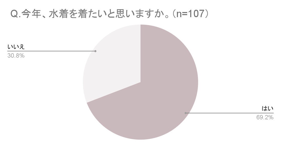 今回の調査でZ世代女性の水着事情についてアンケートを行ったところ、約7割が「今年、水着を着たい」と回答。さらにそのうち6割以上が「新しく購入した/購入する予定」と回答しており、今年購入した新たな水着で海水浴やプールへ行きたいZ世代が多くいることが伺えます。