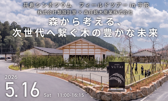 株式会社類設計室(本社:大阪市淀川区、代表取締役社長:岩井裕介)は、5月16日(土)に設計業界の木造に携わる方々との、世代と職能を超えた繋がりの場づくりを目指して、「共創シンポジウム~森から考える、次世代へ繋ぐ木の豊かな未来~」を 「宇陀イノベーションセンターVUTAI(ぶたい)」にて森庄銘木産業株式会社と共同開催します。ここでは、実際に奈良の山へ足を運び、一本の木が消費者の手に渡るまでの「100年の物語」と「山の現実」を体感し、議論をします。
