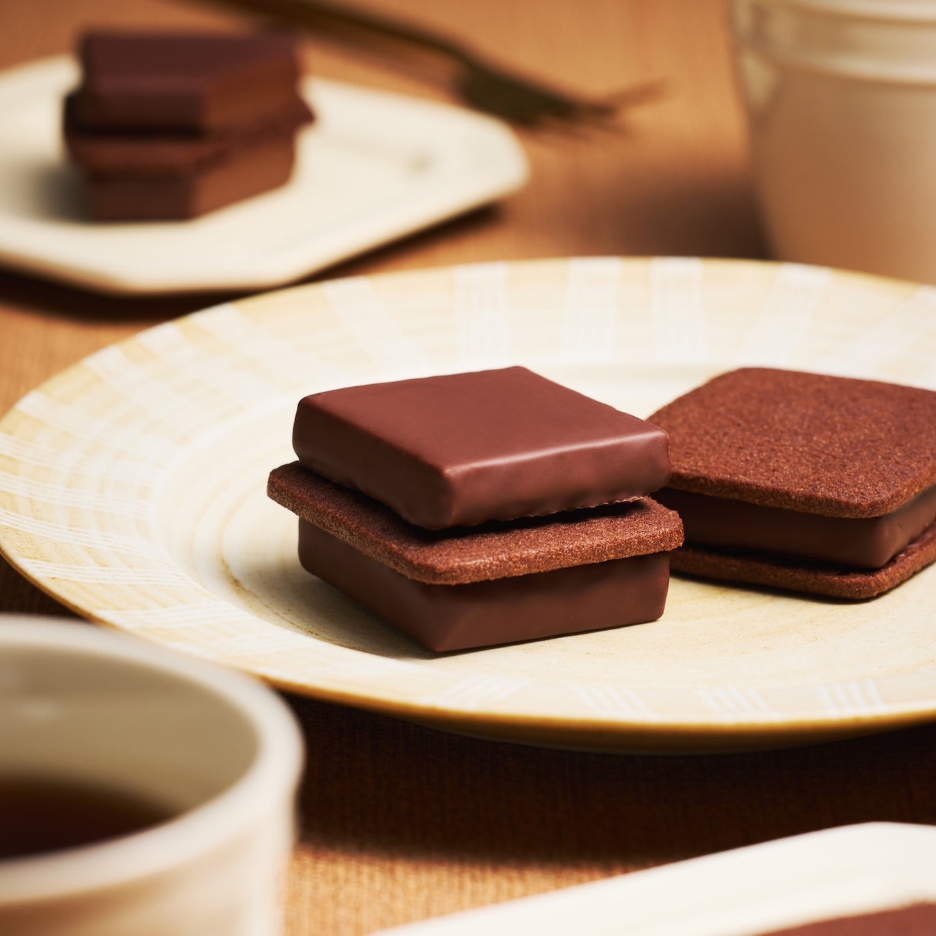 “サクッ、パリッ、とろーり”の黄金比を実現する、看板商品。誕生から20年以上愛され続け、手土産の定番である生チョコサンドの元祖とも言えます。シーズナルなテイストも豊富、これまでに述べ100種類誕生してきました。