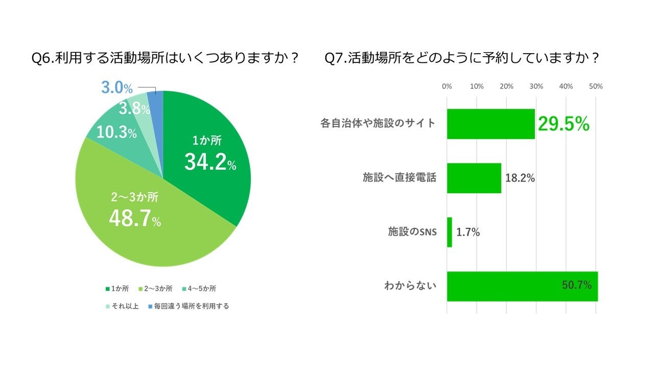 - 活動場所に2~3箇所を使っている団体が約半数