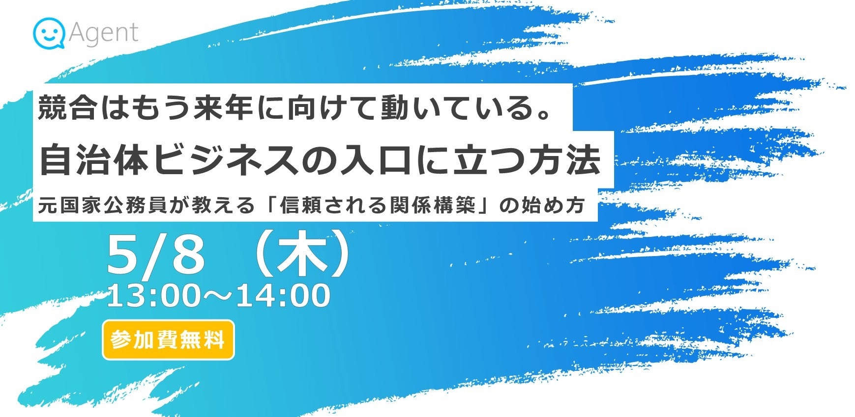 株式会社エージェント(本社:東京都渋谷区、代表取締役:四宮浩二)は、自治体ビジネスの入口に立つ企業に向けて、その“最初の一歩”を支援するオンラインセミナー(ウェビナー)「自治体ビジネスの入口に立つ方法 ― 元国家公務員が教える『信頼される関係構築』の始め方」を2025年5月8日(木)に開催します。本セミナーは、当社が企画する“公民共創”に関する取り組み「ふるのば」の活動の一環として行うものです。