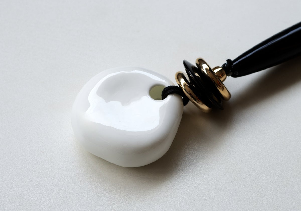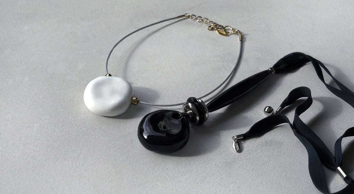 アクセサリーのトップ(ボーンチャイナ製)は、「WHITE」と「BLACK」の2色展開。清らかで柔らかな印象を与える純白の「WHITE」と、深みと落ち着きをたたえた漆黒の「BLACK」が揃っています。