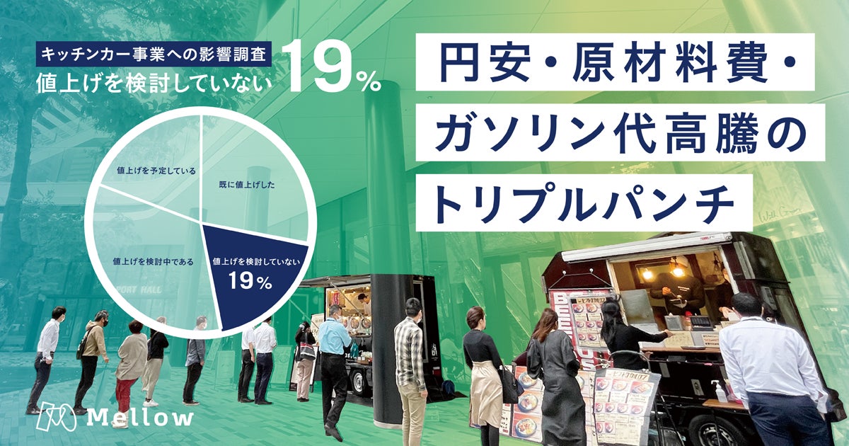 日本最大級のモビリティビジネス・プラットフォーム「SHOP STOP」を展開する株式会社Mellow(本社:東京都千代田区 代表:石澤 正芳、森口 拓也、以下「メロウ」)は、一連の物価高騰を受け、SHOP STOPの登録キッチンカーを対象に「キッチンカー事業への影響に関する実態調査」を実施しました。