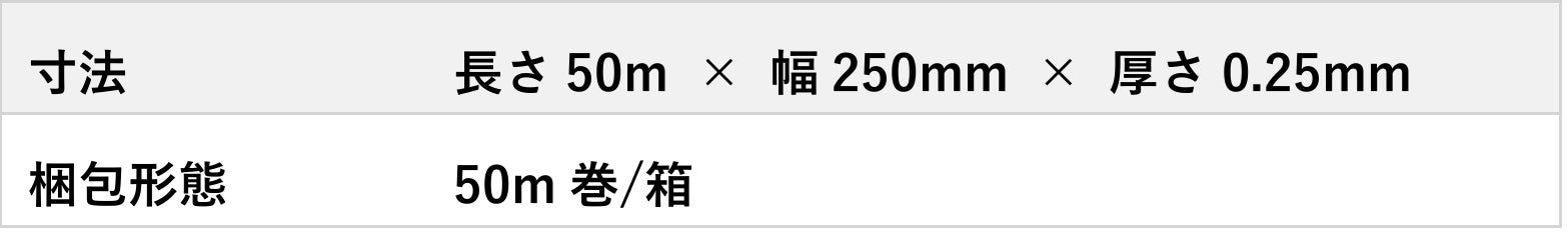 厚さは0.25mm程度で、ロール状での保管や重ね継手施工が可能なため、現場で施工対象に合わせて寸法を調整することができます。また、室内環境下による保管状態で1年間にわたって高い接着性を維持することが確認されています。