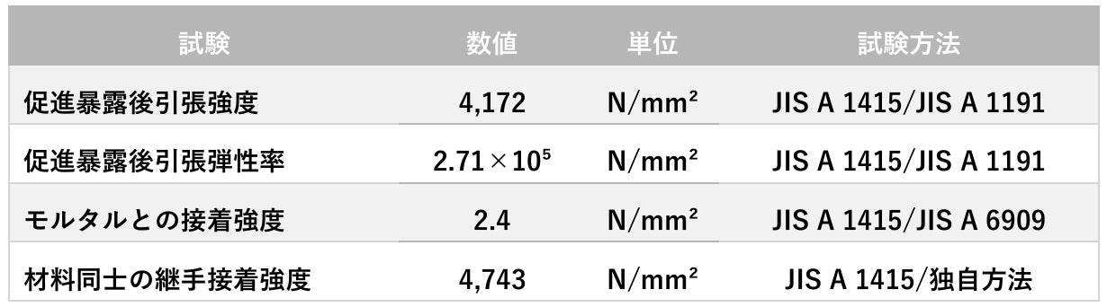 本工法は国土交通省の新技術情報提供システム「NETIS」に登録済みであり、施工性と経済性の向上および工期短縮が認められています。また、株式会社高速道路総合技術研究所(NEXCO総研)における「構造物施工管理要領」が定める使用材料の品質規格も満たしています。
