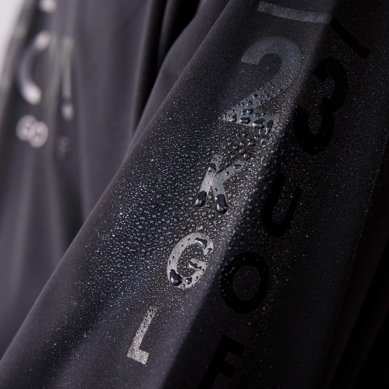 マットで上品な表面感のポリエステルハイゲージニット素材を使用し、ストレッチ性や撥水性、さらには裏面に薄幕でアクリルコーティングを施すことで防風機能も兼ね備え、秋冬の冷たい外気から体温を守ります。