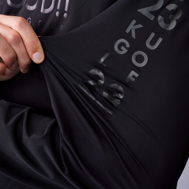 ハイネックのインナーを重ね着しているようなレイヤード風なデザインで、プレー時のドレスコードにも対応し1枚でも様になります。着こなし方でマルチに対応でき、初秋にはこれ1枚で、寒さが進んだ季節にはニットやアウターの下に着るインナーとしても活躍するユニセックスアイテムです。