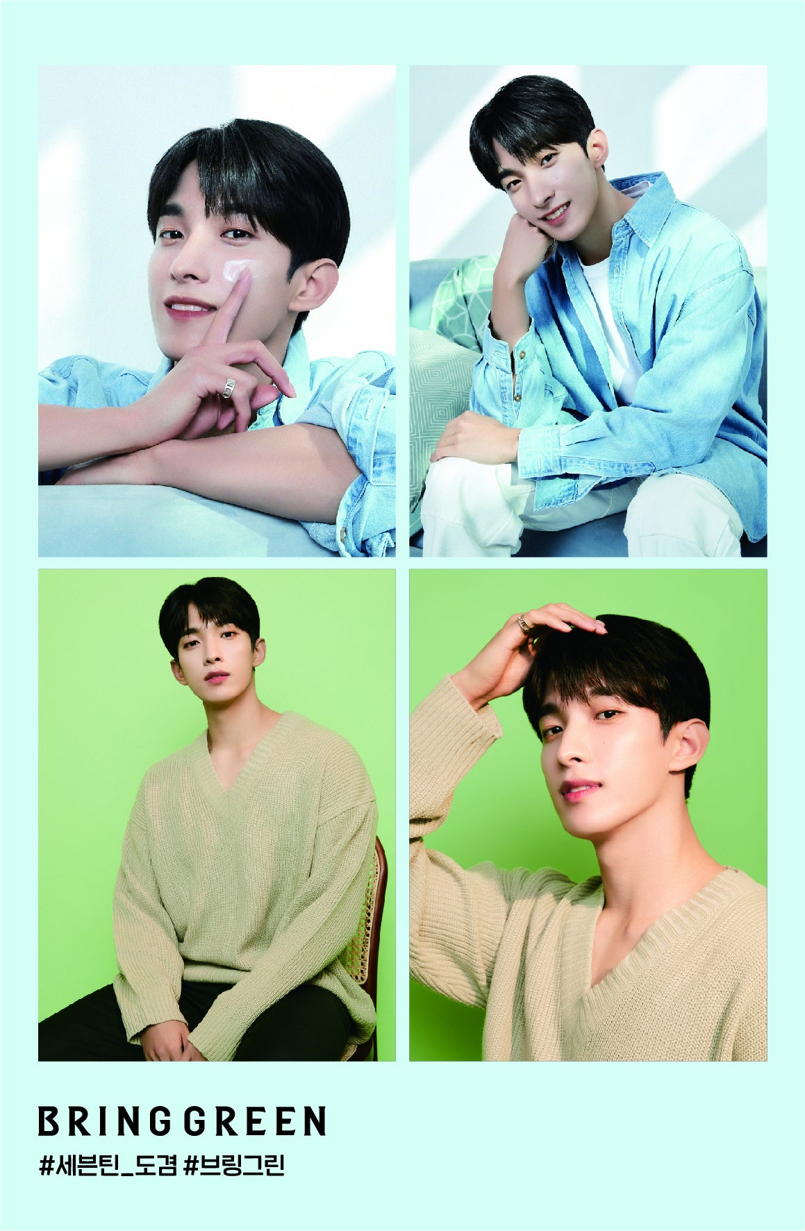 「SEVENTEEN」は韓国の13人組のグループ。メンバーはデビュー当時から世界各国の音楽チャートで軒並み1位を獲得するなど歌手としてはもちろん、ラジオやバラエティ番組、モデル活動など多方面で活躍し話題を集めています。「K-POPリーダー」として愛されているSEVENTEENのメンバーの中からHOSHI、DK、SEUNGKWANがBRING GREENのモデルとなりました。
