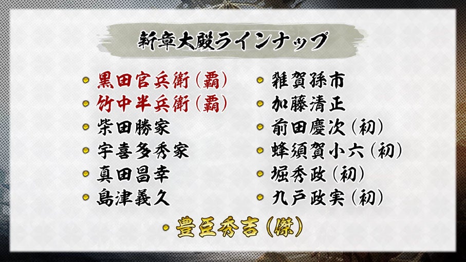 <新章「異説覇伝~日輪の威光と轍~」開幕!12人の新大殿が登場>