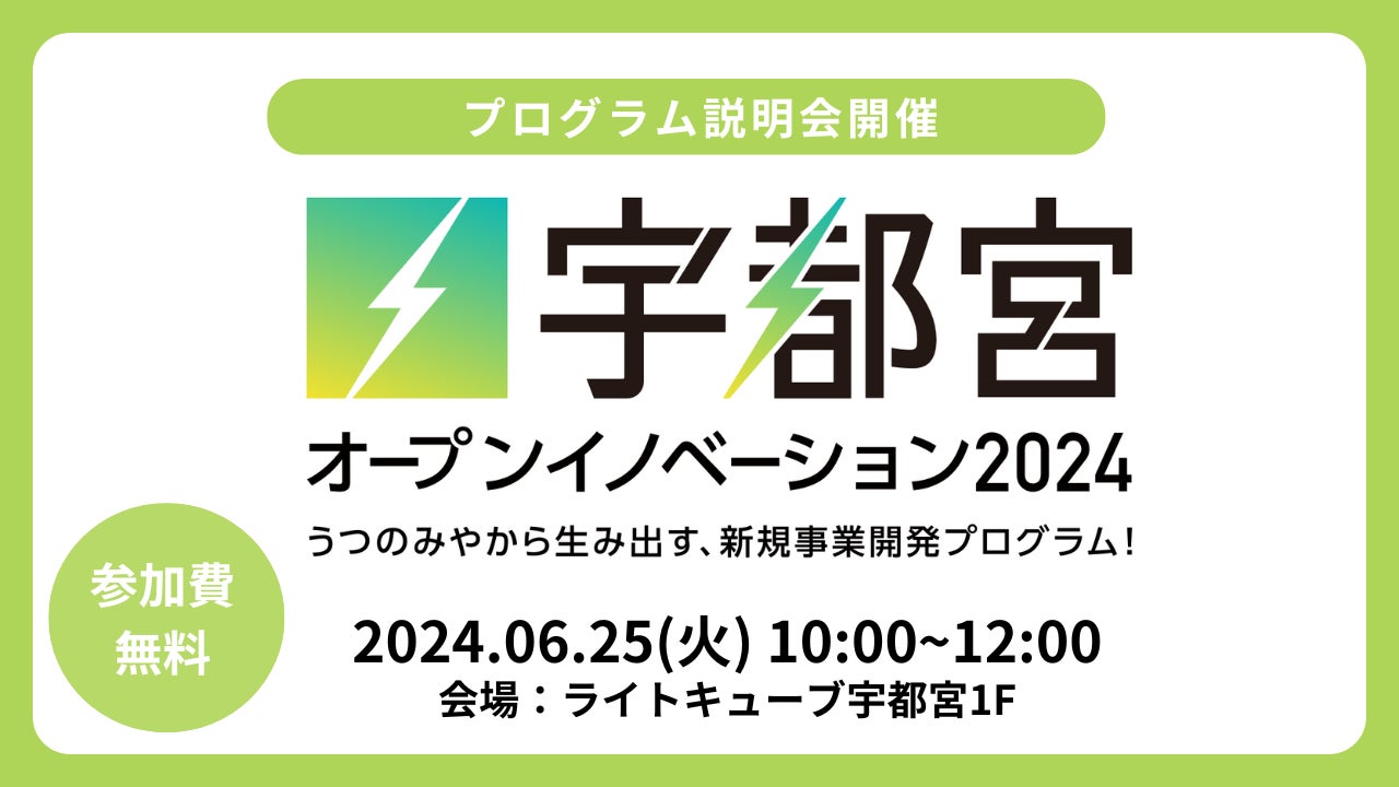 株式会社アルファドライブ(以下、AlphaDrive)は、宇都宮イノベーションコンソーシアム(事務局:宇都宮市)より運営を受託した、宇都宮市内の協業・新規事業開発プログラム「宇都宮オープンイノベーション2024」に参加いただく企業(宇都宮市内の事業者)の募集を開始します。また、募集の開始にあたり、参加企業向けのプログラム説明会「新規事業、オープンイノベーションに取り組む意義」を6月25日(火)にライトキューブ宇都宮にて開催いたします。