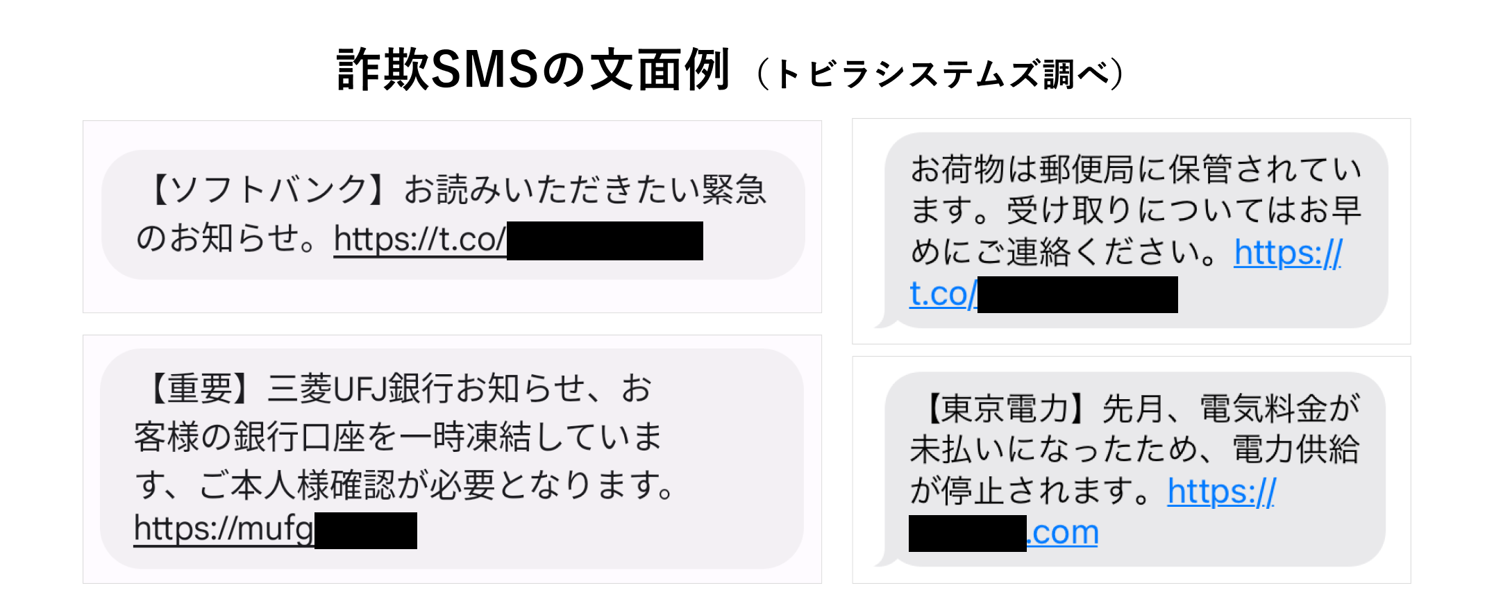 ○「SoftBank」「三菱UFJ銀行」をかたる詐欺SMSが目立つ、手口は多様