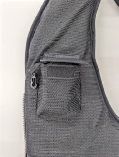 材で設計。ポケットの内部にストラップがついており、落水検知ユニット付属