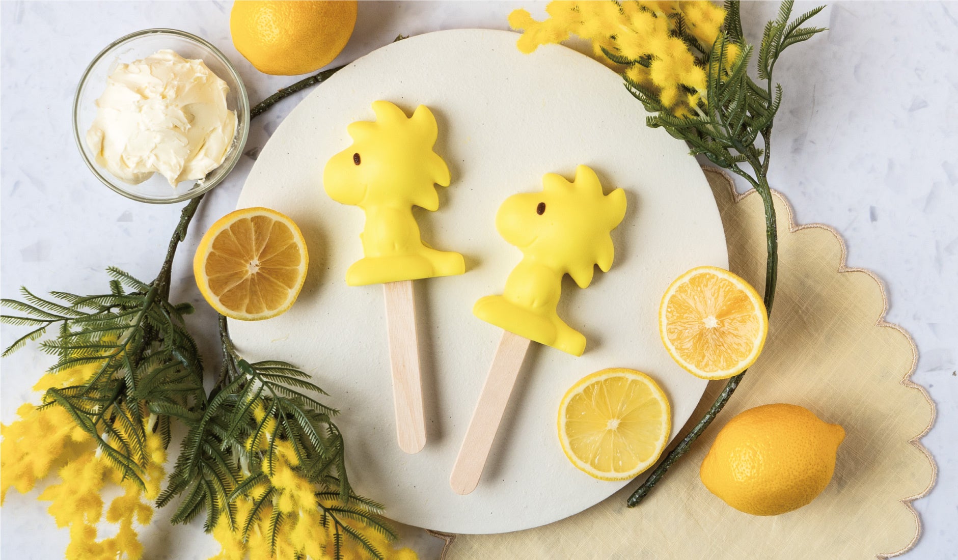 食べ歩きにもぴったりな、ハッピーなイエローが可愛いウッドストック型のレアチーズケーキが登場♪