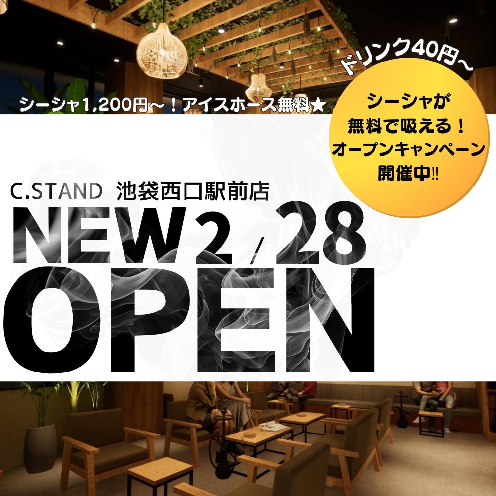 C.STAND 池袋西口駅前店のオープンを記念し、「レギュラーシーシャ無料券」プレゼントキャンペーンを実施いたします。
