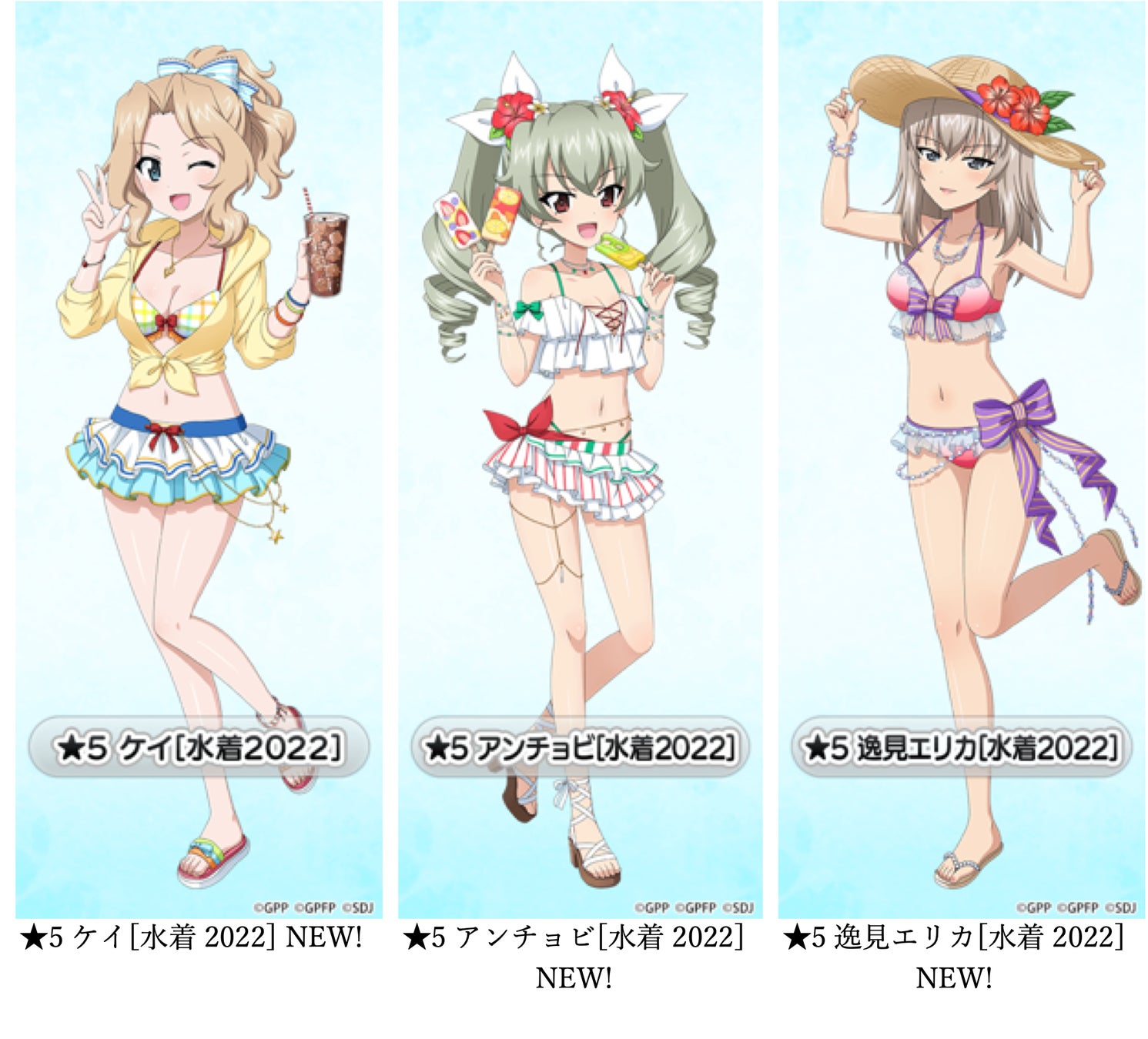 - ■第2弾の2022年水着衣装生徒としてケイやアンチョビなどが登場!
