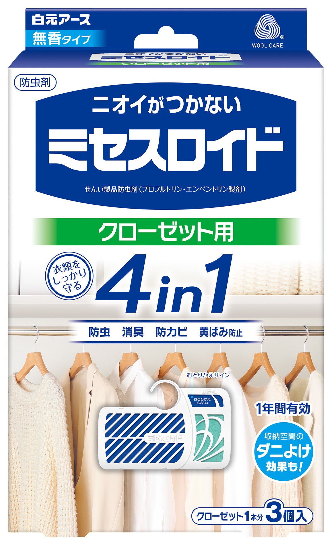 4つの機能+収納空間のダニよけ効果がついたトータルケア防虫剤