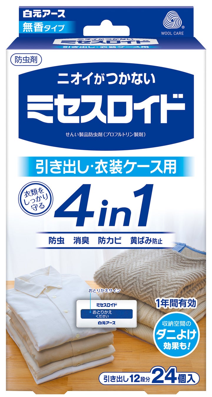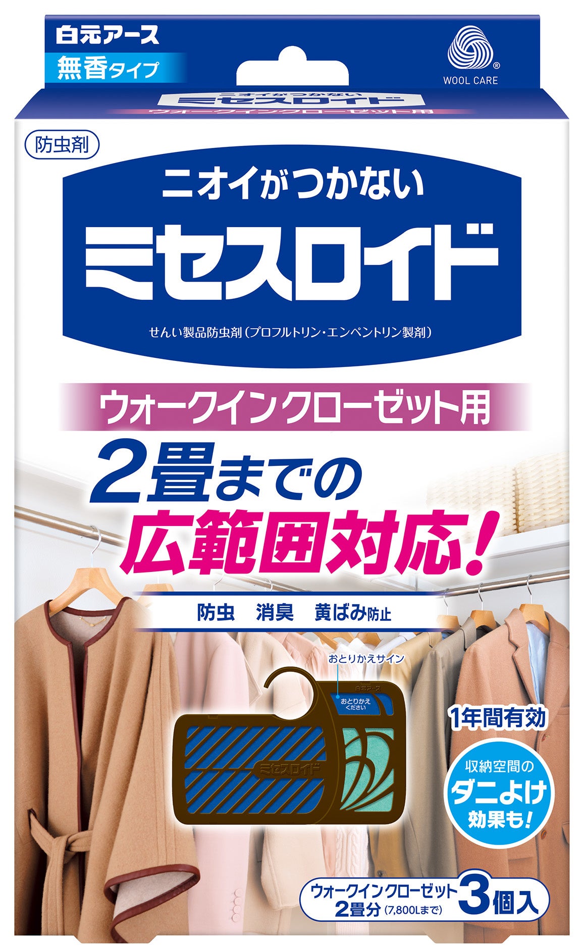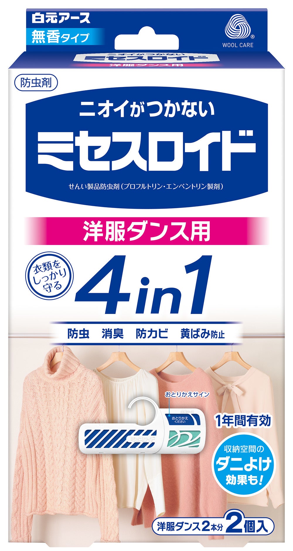 白元アース株式会社(本社:東京都台東区、社長:吉村一人)は、衣類にニオイがつかない無香タイプの防虫剤『ミセスロイド』を2月1日よりリニューアル新発売いたします。