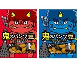 商品特徴:鬼のしましまパンツ柄をカレー豆と、ごま豆で表現しました。