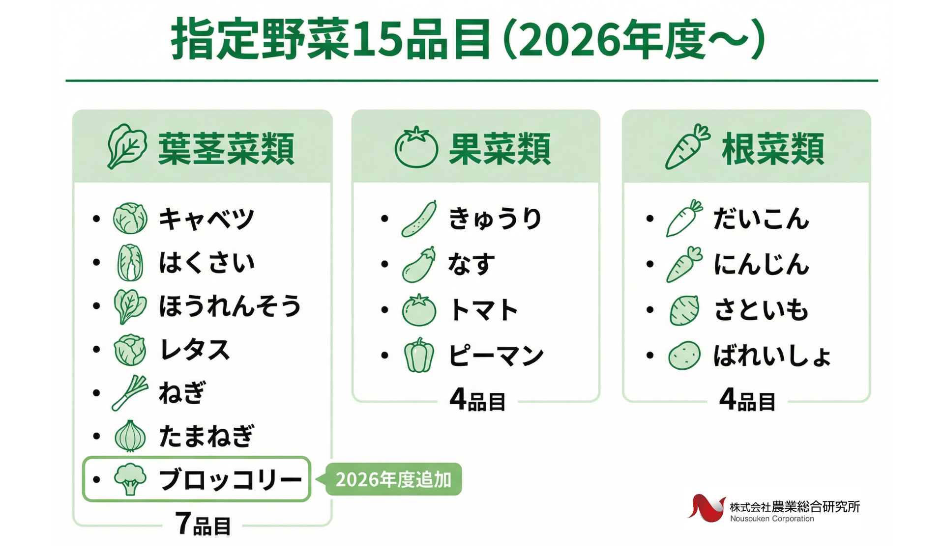 そして2026年4月に、ブロッコリーが新たに15品目目の指定野菜に加わりました。指定野菜の品目追加は1974年のばれいしょ(じゃがいも)以来、実に約52年ぶりのことです。