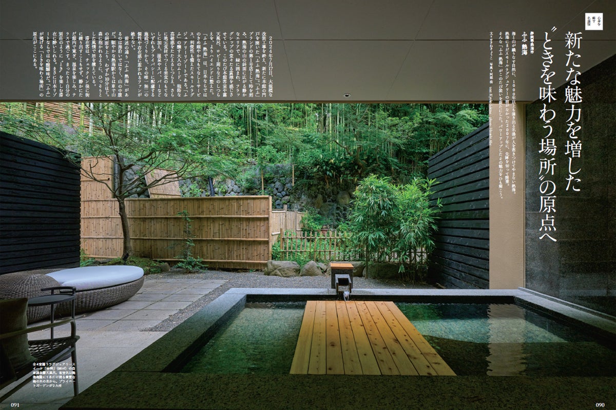 日本だからこその観光コンテンツ、温泉。そんな温泉を存分に堪能できる名旅館やリゾートをご紹介します。スモールラグジュアリーの先駆けで装いを新たにした熱海温泉の「ふふ 熱海」、国登録有形文化財の露天風呂を有し、今年新たに蘇った湯田中温泉「松籟荘」、ラグジュアリーな現代湯治ができる扉温泉「明神館」をピックアップ。