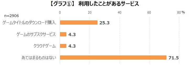3つのサービス形態のうち、「ゲームのダウンロード購入」の利用経験者は25.3%で、全体の約1/4という規模です。