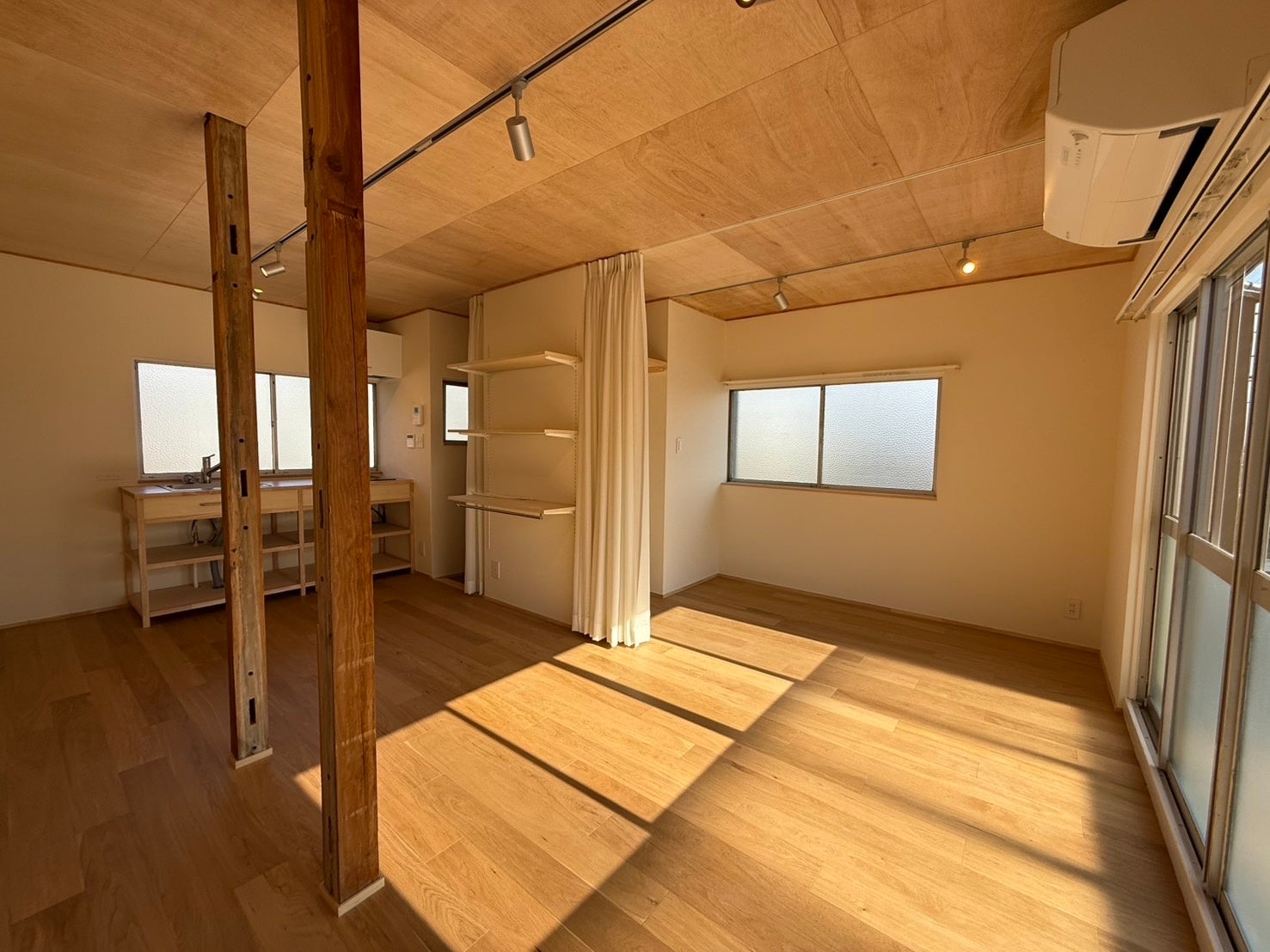 本物件の再生にあたっては、居住性やメンテナンス性に配慮し、強度が高く自然を感じられる合板を多く用いた素材を使用しました。また、居住スペースの部屋の構成は一続きの空間を意識しつつ、カーテンで空間の切り替えができるように工夫しています。本物件『For nest 旭が丘』は、関西地方を中心に今なお数多く残る、「文化住宅」の新たな活用法のモデルケースの一つになると、当社は考えています。