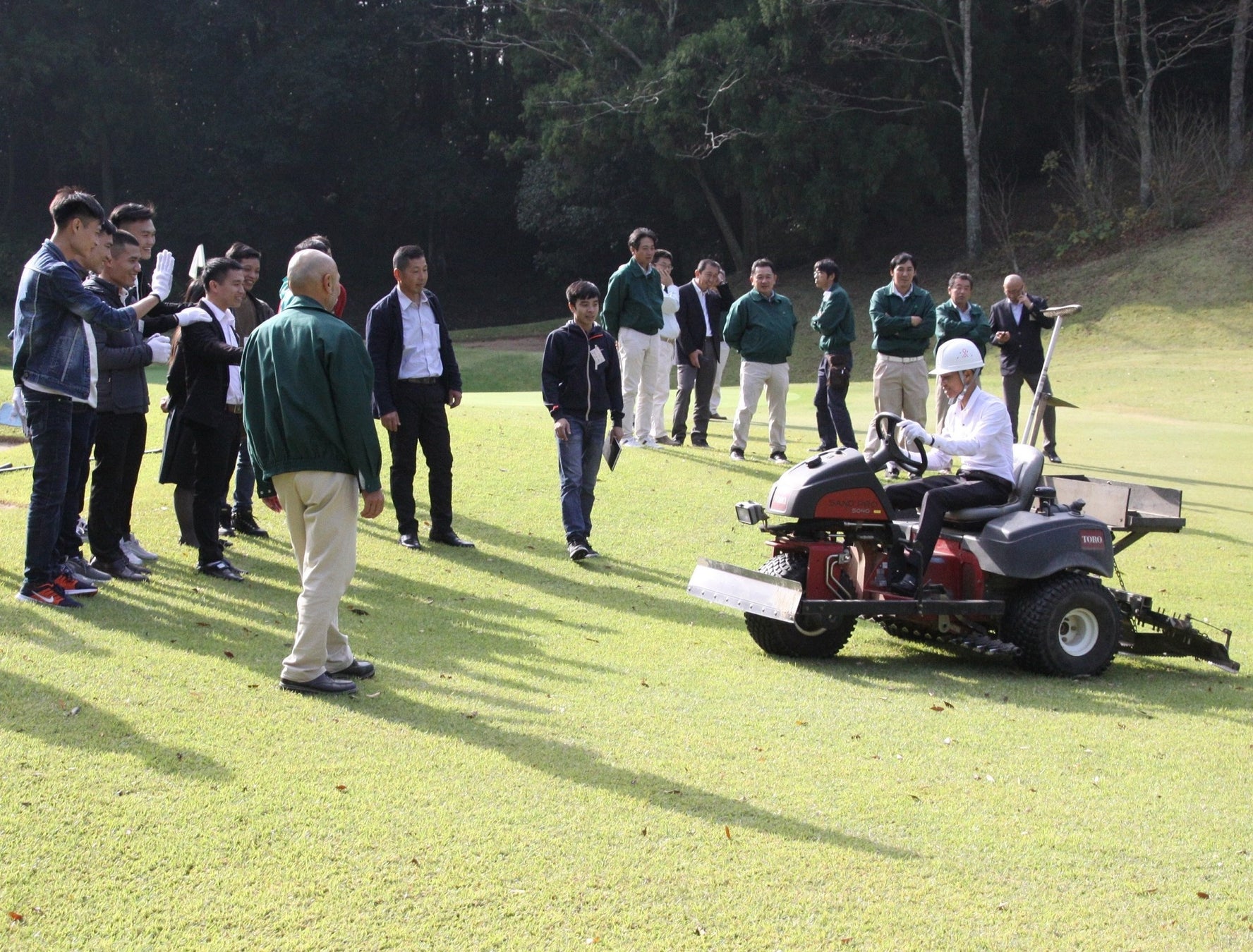 入国後講習が終了した後は当社の8つのゴルフ場へ配属されます。主にコースのセッティング、メンテナンスなどのコース管理業務を習得していただきます(写真は過去の実習風景)。