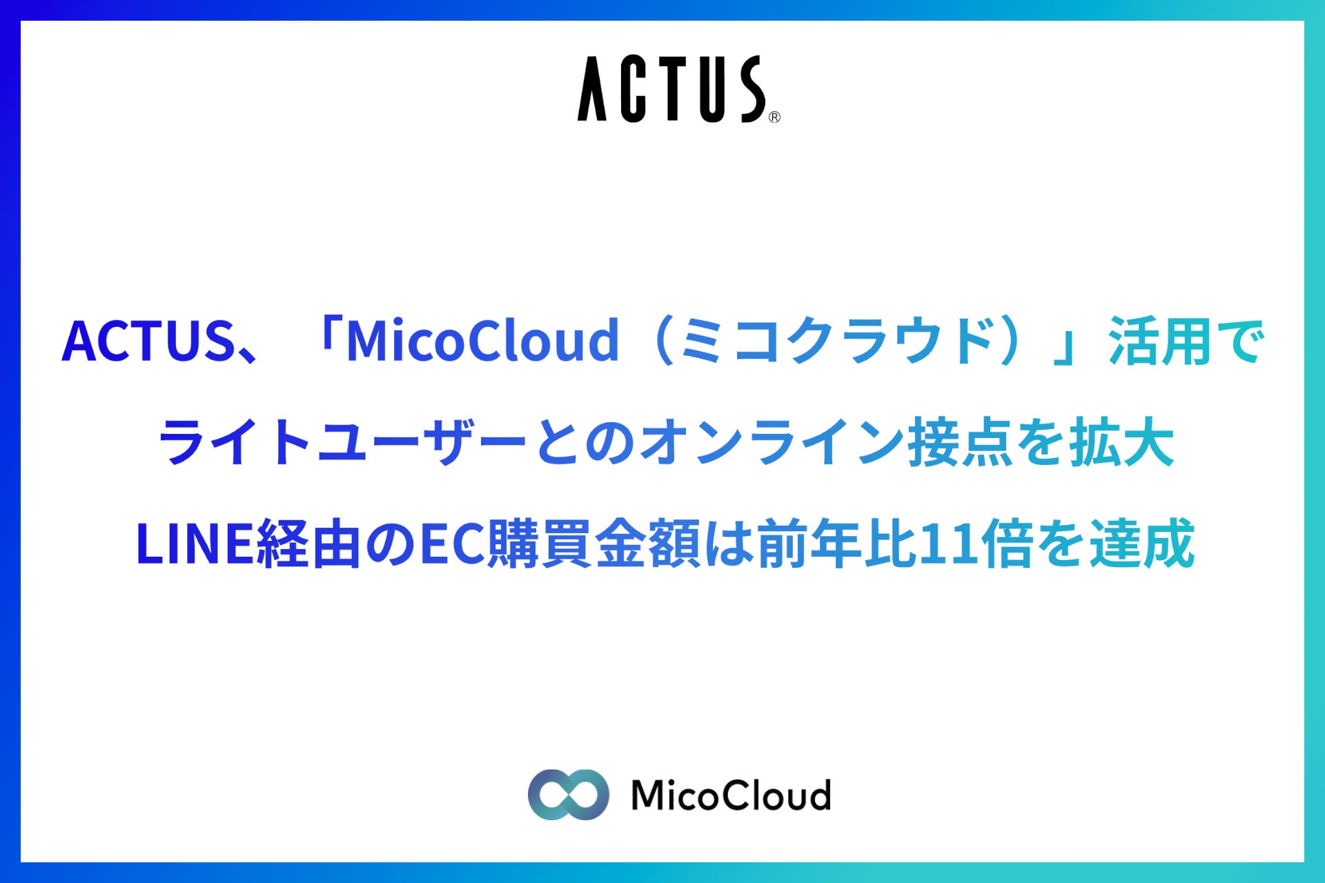 ACTUS(アクタス)、「MicoCloud」活用でライトユーザーとのオンライン接点を拡大し、ECサイトの利用促進。LINE経由のEC購買金額は前年比11倍を達成。
