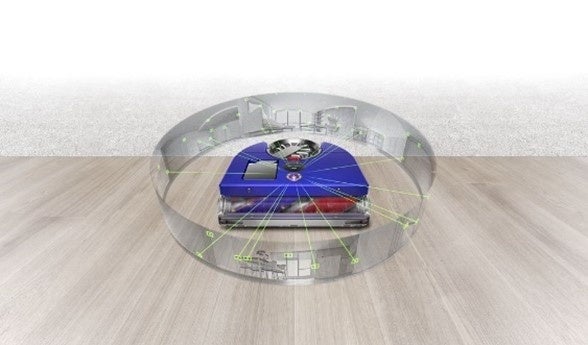 魚眼レンズを用いた360°ビジョンシステムを搭載し、正確に360°全体の周囲を視認します。また、ダイソン独自のSLAM(Simultaneous Localisation and Mapping)テクノロジーが情報を処理し、現在の位置や掃除が必要な場所と終わった場所を判断し、効率良く掃除できる経路を自動的に設定します。さらに、26個のセンサーにより、障害物の回避や、最大2.1cmの段差を乗り換えるなどインテリジェントなナビゲーションを実現します。