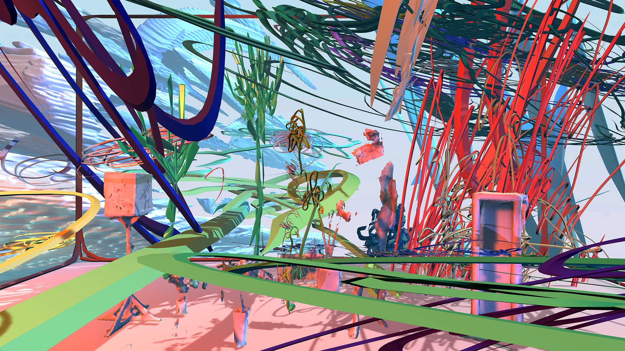 松田ハルは京都芸術大学大学院に在学中の新進作家です。空間の複製物であるVRと、絵画の複製である版画を組み合わせ、高解像の仮想空間とは一線を画す抽象的なイメージの断片で構成されたランドスケープを表現しています。これまではシルクスクリーンの技法をベースに制作をしてきましたが、今回はデジタルの作品データをそのままプリントまで直結できるStareReap の特性を活かした大作を発表いたします。