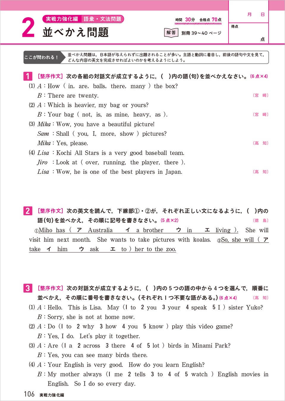 国語/数学/社会/理科では、近年出題が増えている思考力・判断力が試される問題を独立した編にして取り上げました。国語には作文対策も含まれています。