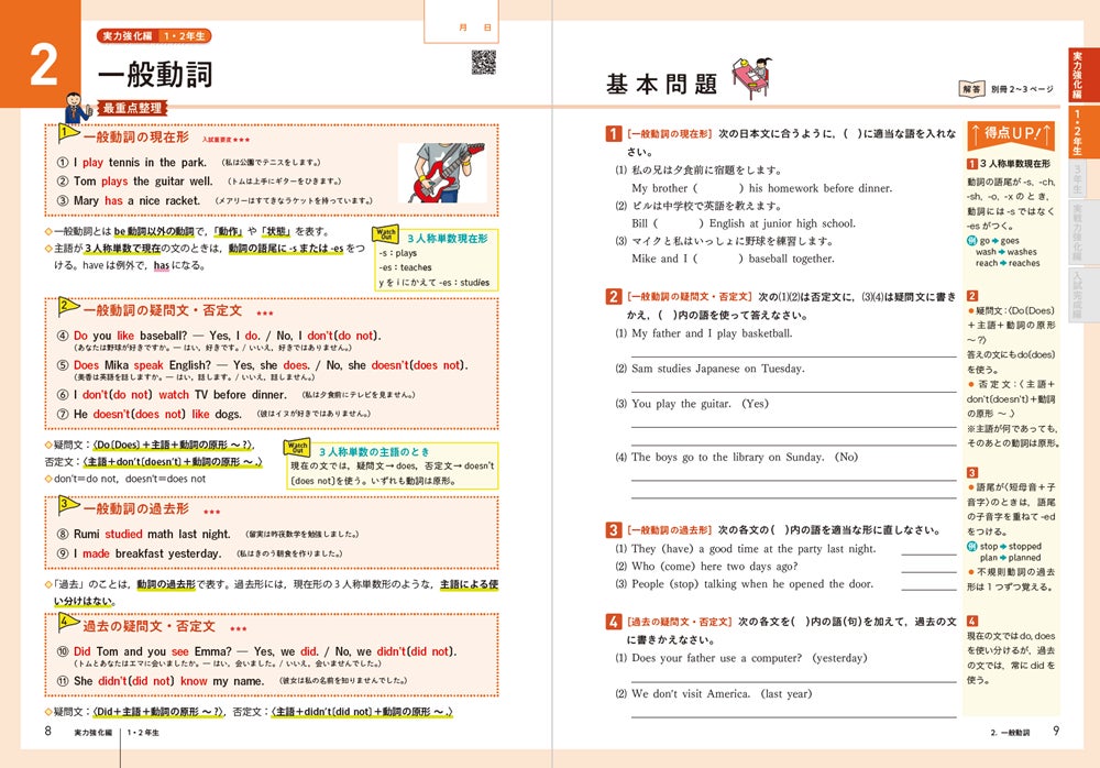 ●英語 例文やリスニング音声はQRコードから聞くことができます。(同じデータはホームページからもダウンロードが可能)
